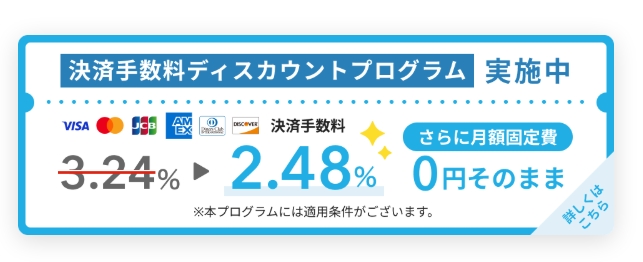 通常は3.24%のクレジットカード決済手数料を2.48%に抑えることができます。