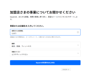 ステップ3 必要事項を入力してSquareの利用を始めるをタップ