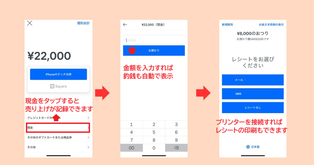 レジとしてのスクエアは、現金決済にも完全対応