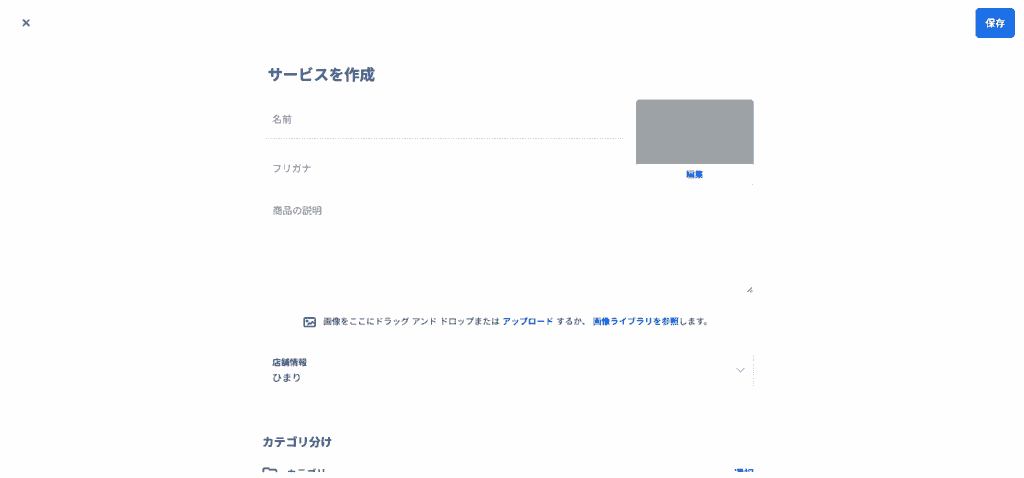 サービスの名前、カテゴリ、価格、期間(サービスにかかる時間)を入力します。