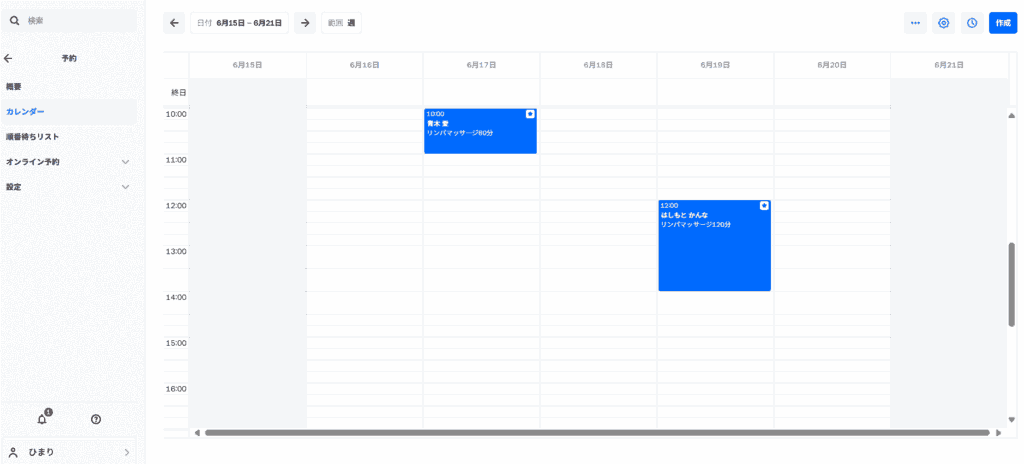 スクエアデータでの予約管理画面はこんな感じですよ。