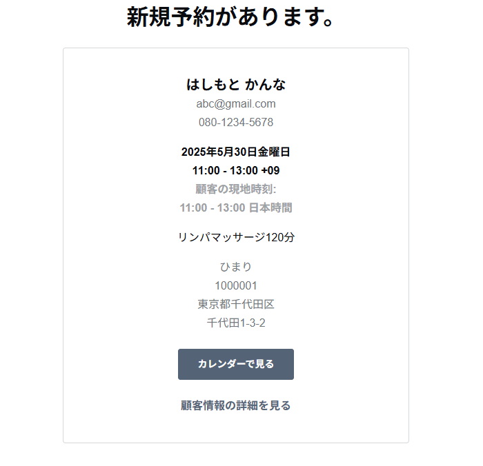 最後に「予約する」ボタンを押すと、確認メールが届きます。